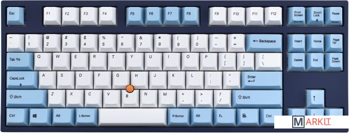 КЛАВИАТУРА БЕЗ КИРИЛЛИЦЫТип: тактильныйСила нажатия: 65 грамм (тяжелые)Длина пути: 4 мм (2 мм до срабатывания)Данная модель представлена в тёмно-синем окрасе с белыми и светло-голубыми клавишами, расцветка выглядит свежо и воздушно. Клавиатура собрана добротно и монолитно, а сочетание высококачественных PBT клавиш с переключателями Cherry MX и звукопоглощающей подложки позволяет сделать печать на клавиатуре максимально тихой (насколько это возможно для механики). Mini-USB порт спрятан в центре под корпусом, а на самой клавиатуре имеются центральная и две боковые канавки под кабель.Уникальная для клавиатур Leopold фишка: теперь, если у вас нет под рукой мыши, клавиатура сможет взять её обязанности на себя. Указательный стик позволяет перемещать курсор, а для левой и правой кнопок мыши с обеих сторон пробела расположились специальные клавиши.Клавиатура поддерживает сочетание клавиш для регулировки громкости и управления музыкой, также имеется возможность переключения между 6KRO и NKRO.DIP-переключатели на задней панелиДают возможность поменять местами функции кнопок Ctrl и Caps Lock, Windows и Alt, Windows и Fn или отключить Windows.Звукопоглощающая подложкаПоглощает звуки при нажатии, делая процесс печати более тихим по сравнению с обычными механическими клавиатурами.Низкопрофильные клавиши Step-Sculpture2Данные клавиши заметно ниже и имеют оптимальный угол наклона, из-за чего, по отзывам, печатать приятнее и комфортнее, чем на более высоких клавишах.Клавиатура совместима с Mac OSFN-слой работает (кроме клавиш F6, F8, F9), а поменять местами клавиши-модификаторы можно в системных настройках. Проверено с MAC OS 10.13Функция Full N-key Rollover по USB (NKRO)Позволяет нажимать одновременно неограниченное количество клавиш. Для печати идеально подойдет как 6KRO, так и NKRO, независимо от вашей скорости. Для игр NKRO будет плюсом и неважно, нажимаете ли вы больше 6 кнопок или нет, поскольку, играя в любую игру, вы можете случайно нажать пару лишних клавиш и из-за этого клавиатура имеет шанс не среагировать на нажатие, которое вы хотели совершить изначально. Имеется возможность переключения между NKRO и 6KRO через FN сочетания.