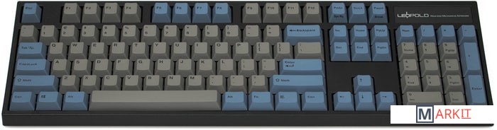 КЛАВИАТУРА БЕЗ КИРИЛЛИЦЫТип: линейныйСила нажатия: 45 грамм (средние)Длина пути: 3.4 мм (1.2 мм до срабатывания)Данная модель представлена в сером окрасе с голубыми клавишами-модификаторами, расцветка выглядит очень сочно и является одной из самых популярных. Клавиатура собрана добротно и монолитно, а сочетание высококачественных double-shot PBT клавиш с переключателями Cherry MX и звукопоглощающей подложкой позволяет сделать печать на клавиатуре максимально тихой (насколько это возможно для механики). Mini-USB порт спрятан в центре под корпусом, а на самой клавиатуре имеются центральная и две боковые канавки под кабель.Клавиатура поддерживает сочетание клавиш для регулировки громкости и управления музыкой, также имеется возможность переключения между 6KRO и NKRO.DIP-переключатели на задней панелиДают возможность поменять местами функции кнопок Ctrl и Caps Lock, Windows и Alt, Windows и Fn или отключить Windows.Звукопоглощающая подложкаПоглощает звуки при нажатии, делая процесс печати более тихим по сравнению с обычными механическими клавиатурами.Низкопрофильные клавиши Step-Sculpture2Данные клавиши заметно ниже и имеют оптимальный угол наклона, из-за чего, по отзывам, печатать приятнее и комфортнее, чем на более высоких клавишах.Клавиатура совместима с Mac OSFN-слой работает (кроме клавиш F6, F8, F9), а поменять местами клавиши-модификаторы можно в системных настройках. Проверено с MAC OS 10.13Функция Full N-key Rollover по USB (NKRO)Позволяет нажимать одновременно неограниченное количество клавиш. Для печати идеально подойдет как 6KRO, так и NKRO, независимо от вашей скорости. Для игр NKRO будет плюсом и неважно, нажимаете ли вы больше 6 кнопок или нет, поскольку, играя в любую игру, вы можете случайно нажать пару лишних клавиш и из-за этого клавиатура имеет шанс не среагировать на нажатие, которое вы хотели совершить изначально. Имеется возможность переключения между NKRO и 6KRO через FN сочетания.