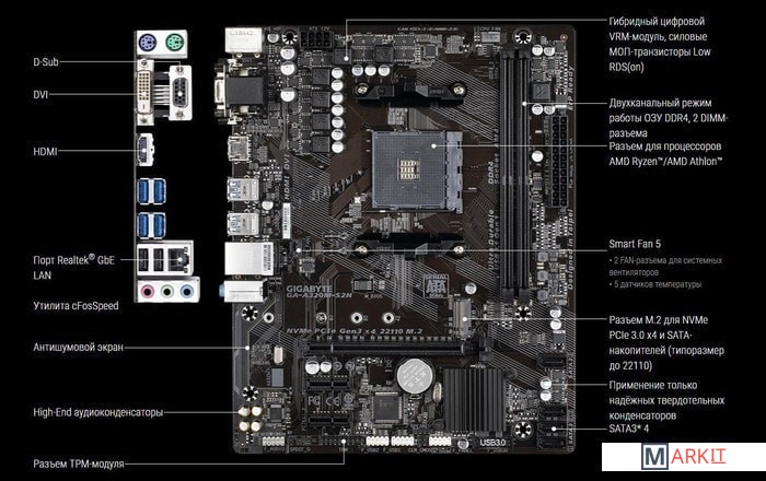 Markit » Материнские платы » Материнская плата Gigabyte GA-A320M-S2H (rev. 3.0)