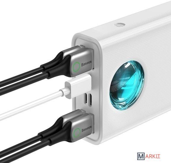 Мощный Выход USB-C способен выдавать 65 Вт. Однако, когда к powerbank подключено много устройств, максимальная мощность на этом порту составляет 45 Вт.Вход:Micro USB: QC2.0 5 В / 2 А; 9 В / 2 А; 12 В / 1,5 А; 8 ВтType-C: PD3.0 + QC2.0 5 В / 3 А; 9 В / 3 А; 12 В / 3 А; 15 В / 3 А; 2 В / 3 А; 60 ВтLightning: 5 В / 2.1AВыход:USB4: QC3.0 + SCP 5V4.5A; 4.5V5A; 5V3A; 9V / 3A; 12V / 2.5A; 20V1.5A; 30 ВтUSB1 / USB2 / USB3: 5 В / 3 А; 15 ВтUSB1/2/3 + USB4 - 5V3A; 15 ВтUSB1/2/3 + USB4: 5V3A; 15 ВтType-C: PD3.0 + QC3.0 5V / 3A; 9V / 3A; 12V / 3A; 15V3A; 20V 3.25A; 65WUSB1/2/3 + Type-C: 5V3A + 45 ВтUSB4 + Type-C: 18 Вт + 45 ВтUSB1-USB4 + Type-C: 15 Вт + 45 Вт