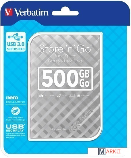 Markit » Внешние накопители (HDD и SSD) » Внешний накопитель Verbatim Store 'n' Go USB 3.0 500GB Серебристый [53196]